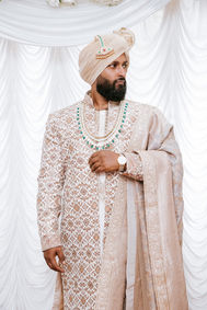 Duppatta/Shawl: Krish wanted a regal look so we made the Duppatta/Shawl in Handcrafted Banarasi Raw Silk Jaal work with Dabka Embroidery all over in Antique Gold